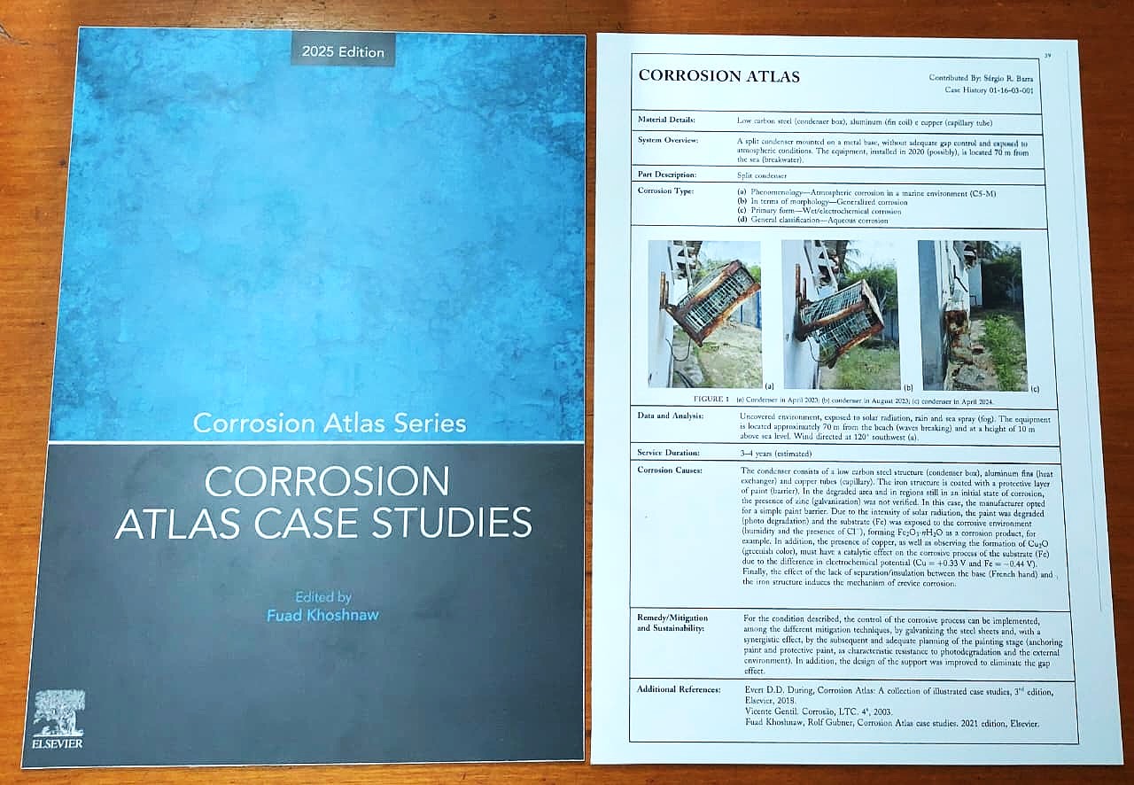 O professor Sérgio R. Barra contribuiu com o Case History 01-16-03-001, que aborda de forma didática o processo de corrosão atmosférica em um condensador de ar-condicionado instalado na orla de Natal (RN).
